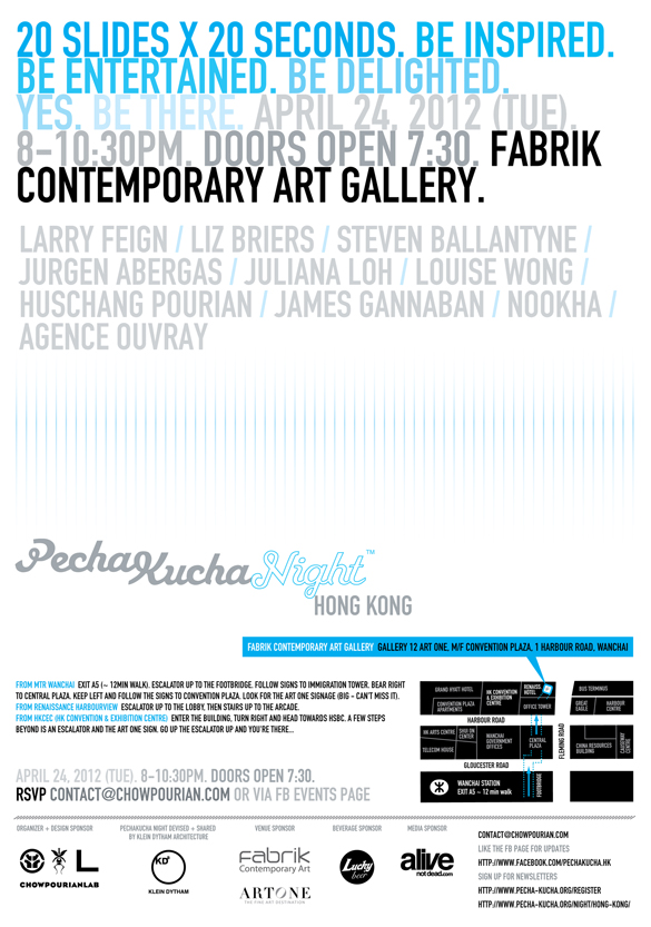 PechaKucha Night was devised by Klein Dytham architecture in Tokyo, 2003, as a networking event for designers to show their work.