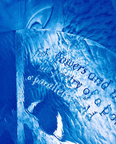 Surrounding the bed, lotus blossoms symbolise perseverance and hope. We observe this scene from within the pond, from a perspective which has been rotated 90°.